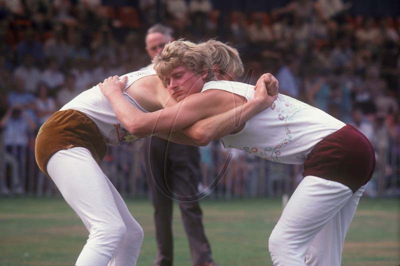 Cumberland and Westmorland Wrestling at Grasmere Sports, Cumbria, England, 1984