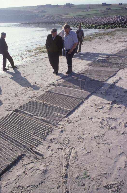 Judging the finished ‘rigs’ of the Boy Ploughmen on the sands near St Margaret’s Hope, Orkney, Scotland, 1984