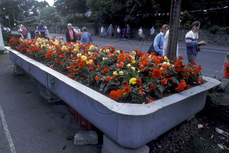 The dish for the 1964 Denby Dale Pie, made to celebrate four royal births that year, recycled in the centre of the West Yorkshire town, 1988