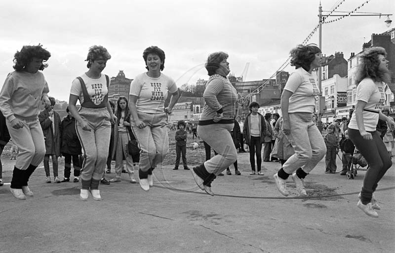 Julie and her troops keeping fit at Shrovetide Skipping in Scarborough, North Yorkshire, England, 1984