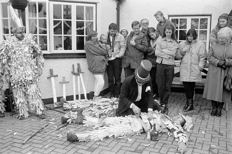 The Doctor administers to the two fallen combatants in the Mumming Play in Crookham Village, Hampshire, England, on Boxing Day 1992
