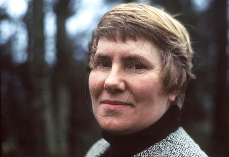 Isabel Sutherland, Scottish folksinger and collector, in her garden in East Sussex, 1966