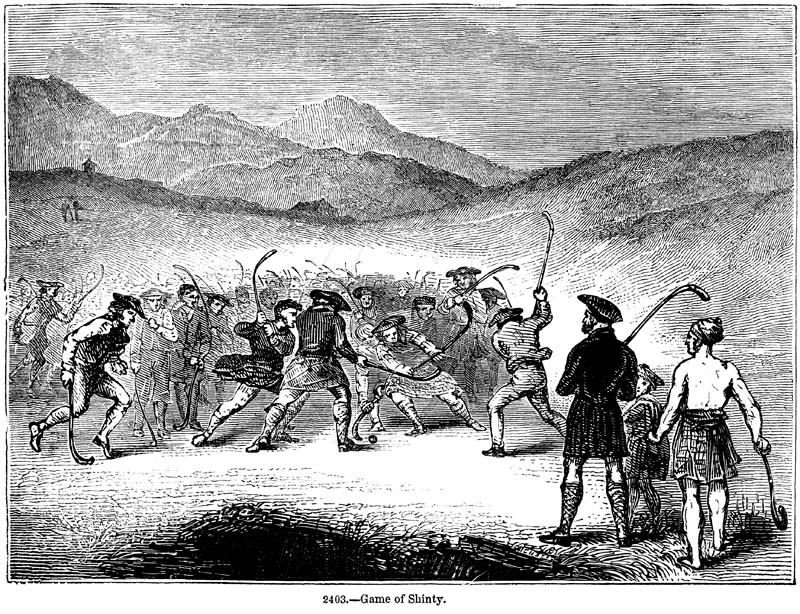 Shinty, a game akin to Irish hurling and hockey, played still in Scotland (From ‘Old England’, published c1860)