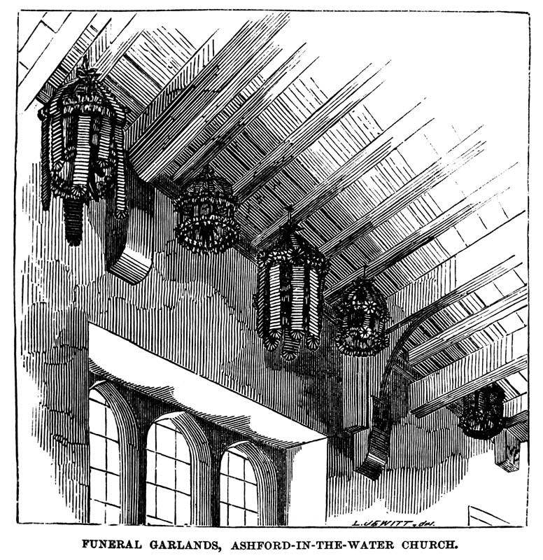 Funeral Garlands in Ashford-in-the-Water Church. Also know as Maiden’s Garlands or Virgin’s Crowns, these were carried before the coffins of ‘maidens’ and later displayed in church (from Chambers’ Book of Days, 1862)