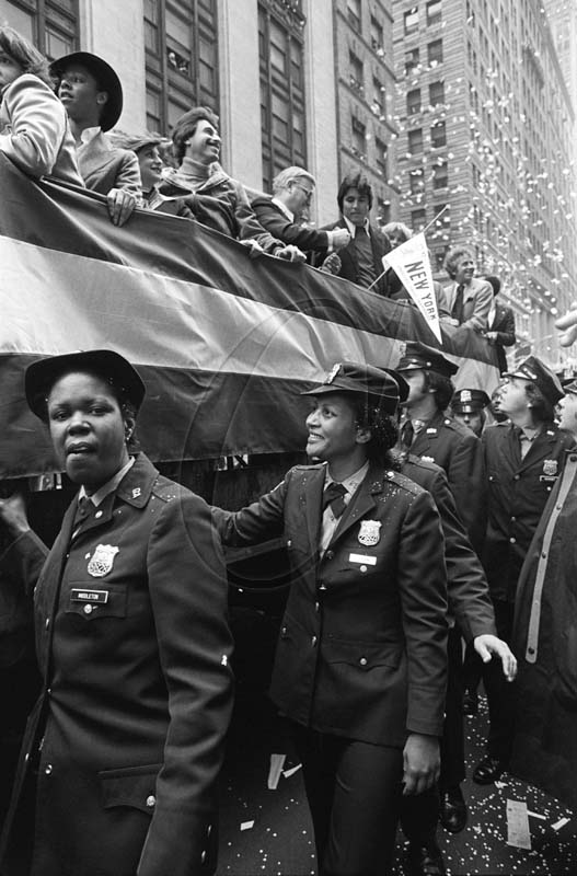 Cops and ‘Yanks’ at the tickertape parade to celebrate the Baseball World Series triumph of the New York Yankees in October 1978 (The parades go along Lower Broadway in the Financial District. Since the first in 1886 there have been nearly 200)