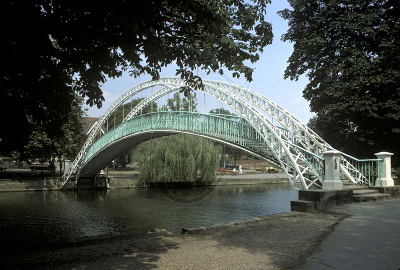 Bedford Suspension Bridge over the River Great Ouse, a remarkably elegant footbridge designed by John Webster and opened in 1888