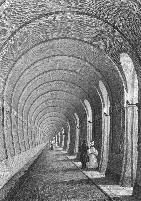 The Thames Tunnel between Wapping and Rotherhithe by Marc and Isambard Brunel, as depicted by William Tombleson in 1834, nine years before it was actually finished!
