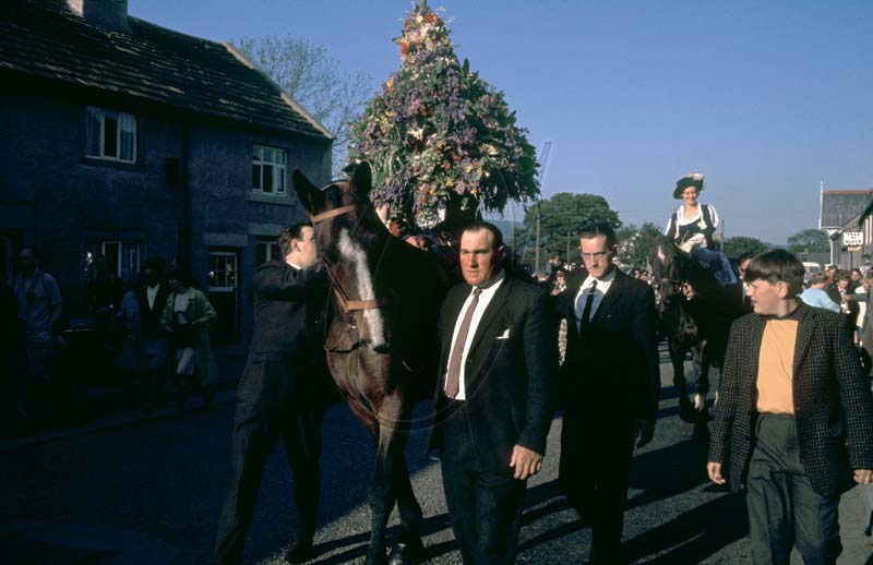 Castleton Garland being paraded around Castleton, Derbyshire, on 29 May 1966