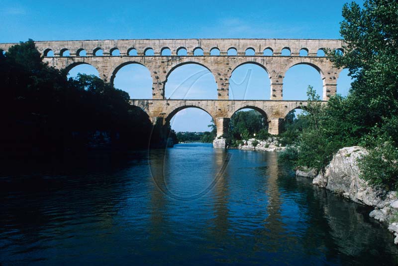 The Pont du Gard, built over the River Gardon by the Romans in the 1st century as part of a 30 mile aqueduct to bring water from a spring in Uzès to what has become the city of Nimes in southern France, 1992
