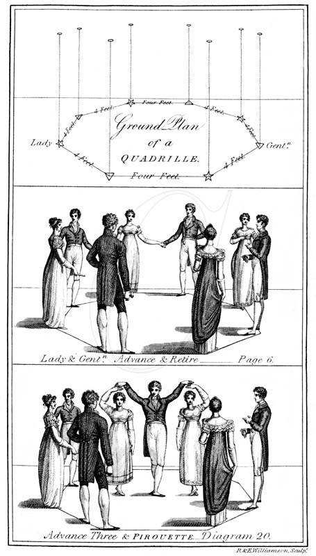 A page of diagrams from ‘Treatise on Quadrille Dancing’, by Thomas Wilson, London 1822