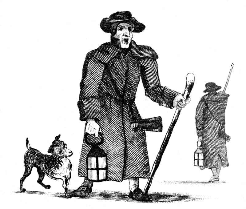 ‘Past Ten O’Clock!’ the Watchman’s cry from ‘The New Cries of London’, with ‘characteristic engravings’ by Isaac Taylor, published by Darton & Harvey, London, 1803