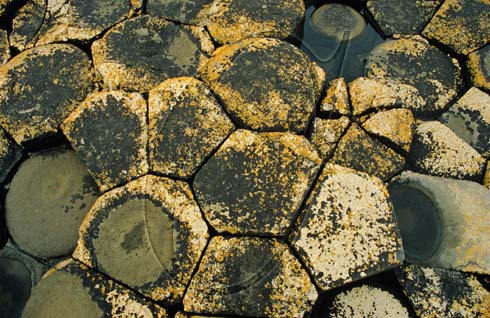 A vertical view of some of the basalt columns of the Giant’s Causeway, County Antrim, Northern Ireland, UK