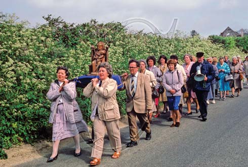 Catholic pilgrims carry a wooden image of the Virgin Mary to the Slipper Chapel at Walsingham during Whitsun; Norfolk