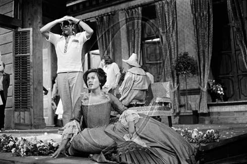 Kiri Te Kanawa as the Countess during rehearsals of ‘The Marriage of Figaro’ with Humphrey Burton (arts presenter and film producer) at Glyndebourne Opera. 1973
