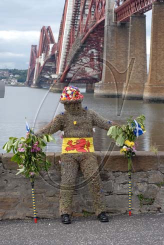 The Burry Man by the Forth Rail Bridge, Queensferry, Edinburgh, Scotland