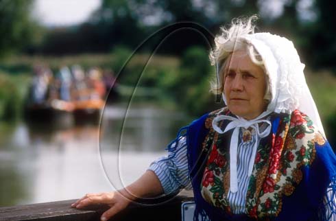 A lady in traditional English boatwoman’s style bonnet c1890. by the River Kennet at Burghfield near Reading Berkshire UK