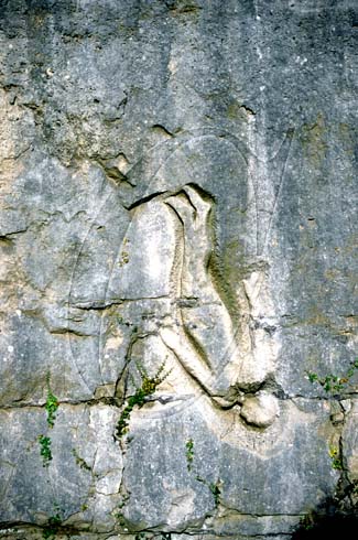 The rock carving entitled Still Falling at Tout Quarry Sculpture Park Portland Dorset England UK by Antony Gormley the creator of the Angel of the North.