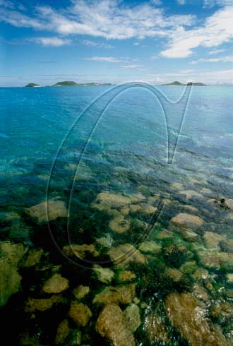 View from St Martins to Little Ganilly and Great Ganinick Rocks of the Eastern Isles at the Isles of Scilly England UK