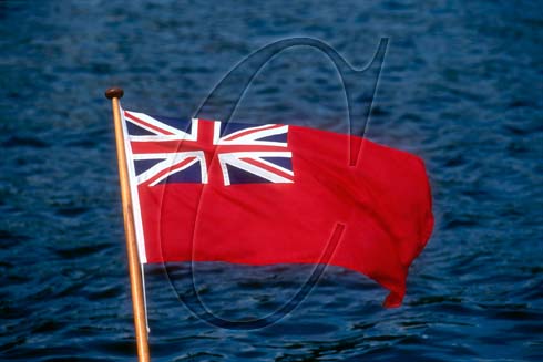 The Red Ensign flies at the stern of a pleasure launch on the River Thames at Henley in Oxfordshire England UK