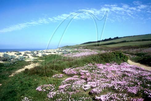 The Coast Path at Cogden Beach National Trust reserve, Chesil Beach, Burton Bradstock, Dorset, England, UK