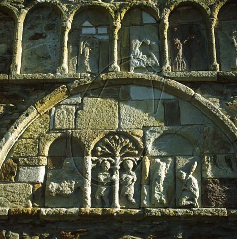 Stone carvings on St Declan’s Cathedral, Ardmore, Co Waterford, Ireland