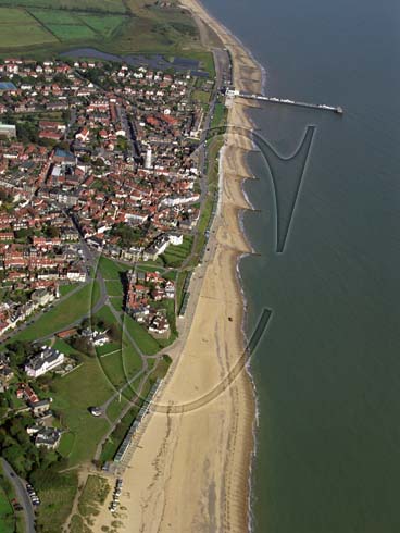 Aerial photography of the Suffolk coast, Southwold, showing the recently rebuilt pier