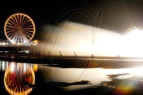 Blackpool beach of fire. Central pier and big wheel during the illuminations.