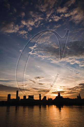 Liverpool waterfront at dawn, Merseyside, England, UK