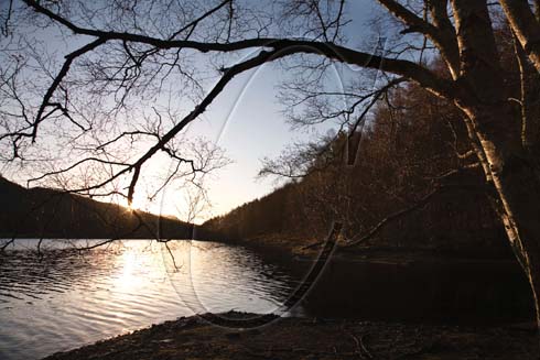Ladybower Reservoir at dawn from Hurst Clough, Peak District National Park, Derbyshire, England, UK