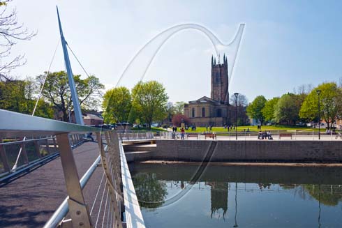 Footbridge over River Derwent, Cathedral Green, Derby, Derbyshire, England, UK