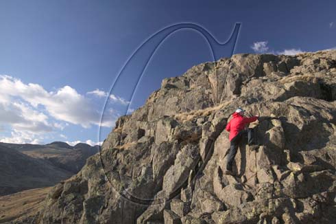 climber on Pike o Blisco, Lake District.