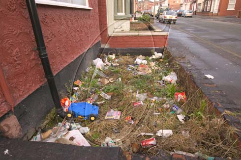 Rubbish in a garden in kensington, Liverpool