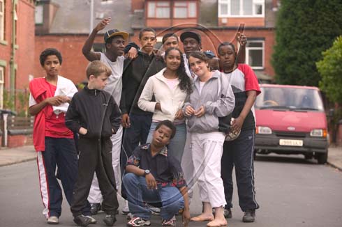 a group of mixed race kids on the streets of Beeston, Leeds