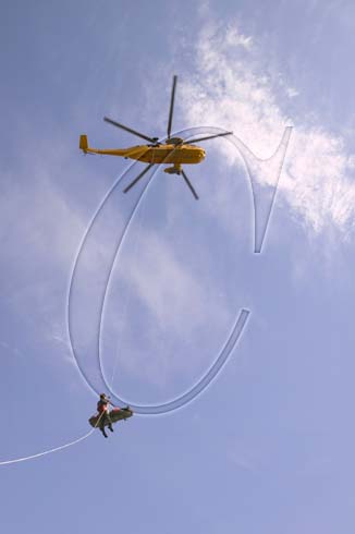 the Langdale/Ambleside mountain Rescue Team and RAF Sea King helicopter whinch an injured climber from Jacks Rake, Pavey Ark, Langdale Pikes, Lake district
