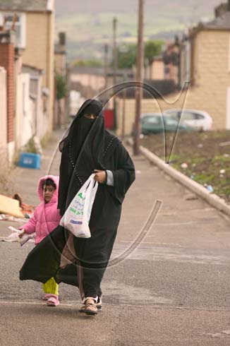 Muslim women wearing the burkha on the streets of burnley, Lancashire