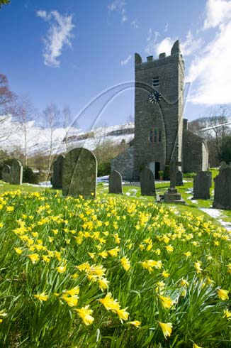 wild daffodils in Troutbeck Churchyard in theLake District UK