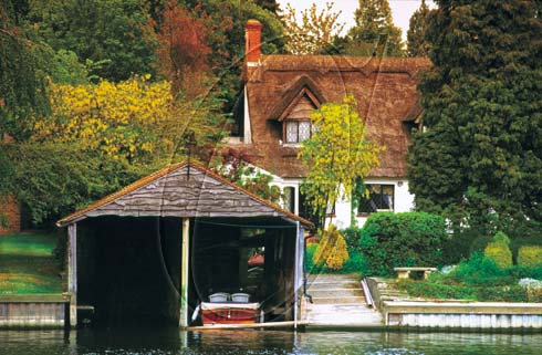 England Berkshire River Thames Cookham riverside houses and boats