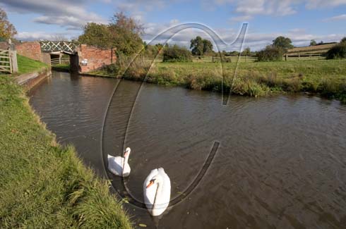 Swans on the Stratford upon avon canal, Preston Bagot flight of locks, Warwickshire, Midlands England UK.