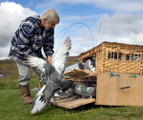 Pigeon Fancier releasing pigeons for a training flight on the Yorkshire Moors