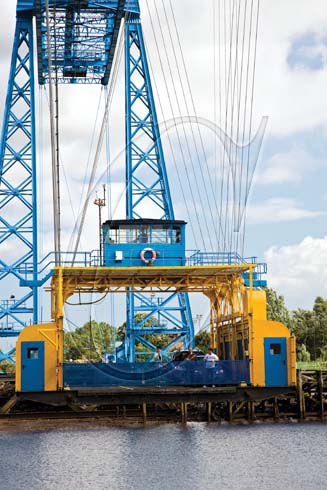 The gondola car carrier over the River Tees, Middlesbrough Transporter Bridge, Tees Valley