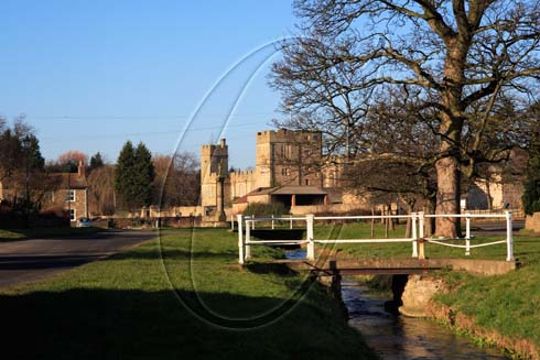 Village of Snape with castle & village green, North Yorkshire, England. Castle was built by Lord Ranulph Fitzranulf between 1420 & 1450. Catherine Parr, sixth wife of Henry VIII, lived there for a short while.