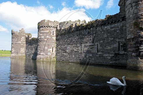 Beaumaris castle, Anglesey. Swan in the moat. Built by Edward 1 in 1295 designed by James of St George.