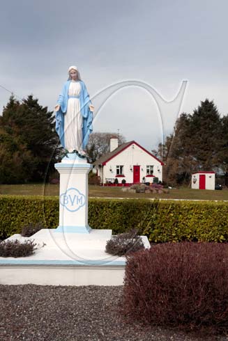 Statue of the Virgin Mary in front of a cottage on the Dingle Peninsula in County Kerry Ireland