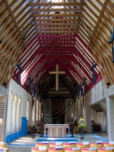 St.Andrew’s Church, Rushmere St.Andrew, nr.Ipswich. Interior from east end, with extension by George Pace 1967, foreground.