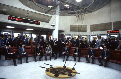 The ‘open-outcry’ dealing floor of the London Metal Exchange, Leadenhall Street, City of London, January 1994