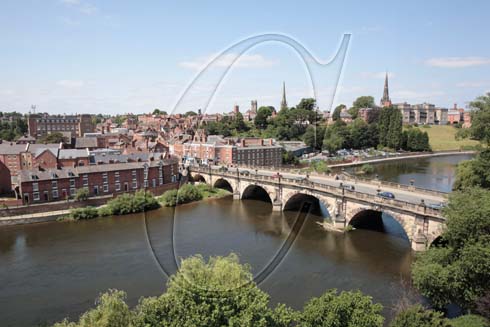 English Bridge, River Severn and Shrewsbury, Shropshire. English Bridge built 1768-74 by John Gwynne, widened and repaired in 1926, reusing the existing stone.