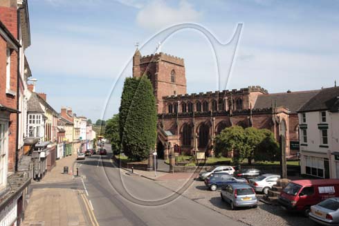 Looking north towards St Nicholas’ Church, High Street and Lower Bar, Newport, Shropshire.