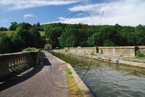 Dundas Aqueduct, carrying the Kennet and Avon canal across the river Avon. Taken from the Wiltshire side of the aqueduct which straddles the county boundary with North-east Somerset at this point in the Limpley Stoke valley.