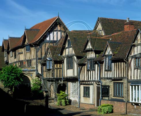 The medieval Lord Leycester Hospital in Warwick, Warwickshire, originally a home for ex-servicemen, but now providing flats for them and their wives; it is also a museum
