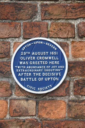 Plaque commemorating visit of Oliver Cromwell to Upton-upon-Severn following English Civil War